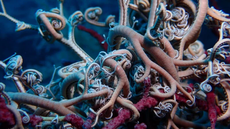 Le gorgonocéphale est un échinoderme vivant à grande profondeur, généralement au-delà de 50 m et jusqu’à 800 m. Sa rencontre à moins de 30 m de fond apparaît par conséquent assez exceptionnelle. On le trouve généralement accroché à des gorgones. Appartenant à la classe des Ophiuroïdes, il est proche des ophiures, ces petits organismes plus fréquemment rencontrés par les plongeurs. On peut le rencontrer replié, formant une sorte de boule autour de son support. Mais c’est surtout lorsqu’il déploie ses 10 bras mobiles et ramifiés qu’il offre à la vue du plongeur toute sa splendeur. Il se nourrit de particules organiques et de petits animaux planctoniques dérivant dans le courant.