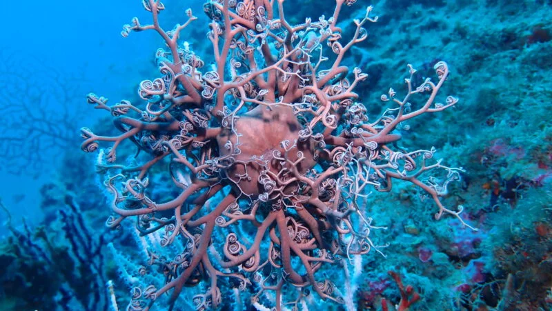 Lorsqu’on le croise en plongée, il convient de ne pas le déranger en dirigeant l’éclairage dans sa direction. Mieux vaut baisser l’intensité de vos lampes et l’éclairer de manière indirecte. De par sa dimension graphique rappelant les figures fractales, c’est une rencontre qui fait le bonheur des photographes sous-marins et notamment en photographie d’ambiance vu ses dimensions pouvant atteindre 80 cm de diamètre lorsqu’il est déployé.